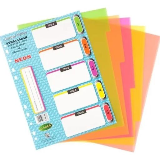 SEPARADOR PVC T/A4 5 POSICIONES FLUO
